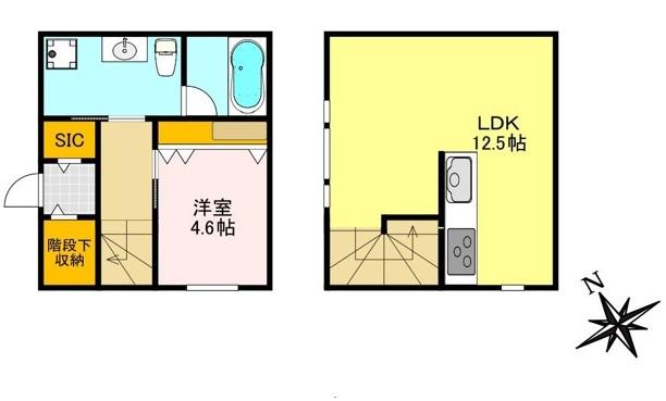 | 間取り | 1LDK 1階 洋4.6 2階 台12.5 | 賃料(共益費) | 84,000円 (共益費:9,900円) |